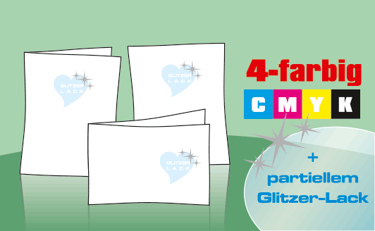 Anlässe für Gruß- und Einladungskarten gibt es immer. Egal ob Sie Karten zur Geburt oder Taufe brauchen oder auf der Suche nach Hochzeitskarten sind, Geburtstagsgrüße, Weihnachtskarten oder Neujahrsgrüße verschicken wollen. Mit einer hochwertigen Einladungskarte inkl. partiellem Glitzer-Lack liegen Sie immer goldrichtig. Gedruckt wird in Offsetqualität auf 300g Bilderdruckpapier oder auf unserem Chromeffekt-Hochglanz Papier Silber, als ganz besonderes Highlight.