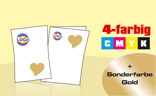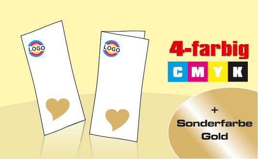 Sie möchten Ihre Flyer oder Faltblätter inklusive einer Sonderfarbe (Gold) gedruckt haben? Sehr Gerne! Wir bieten Ihnen eine große Auswahl an verschiedenen Formaten und hochwertigen Papiersorten und Veredelungen. Egal ob Wickelfalz, Zickzackfalz oder Fensterfalz, wir berücksichtigen jeden Ihrer Wünsche und schrecken auch vor Sonderwünschen nicht zurück.