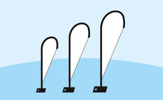 Beachflags machen stets eine gute Figur: indoor wie outdoor! Wir liefern unsere Beachflags inkl. stabilem Gestänge, einer praktischen Tasche sowie einer pulverbeschichtete Bodenplatte in schwarz (21cm x 30cm, 0,65kg) aus. Die Aufbauzeit beträgt rund drei Minuten. Bedruckt werden Ihre Beachflags einseitig vollfarbig auf 65g/qm Lightweight (B1 zertifiziert). Die bedruckbaren Stoffmaße unserer Dropflags betragen: 49cm x 145cm. Straightflags werden von uns in den Stoffmaßen 41cm x 158cm bedruckt. Die Gesamthöhe unserer Dropflag beträgt: 180cm, die Gesamthöhe der Straightflag 190cm.